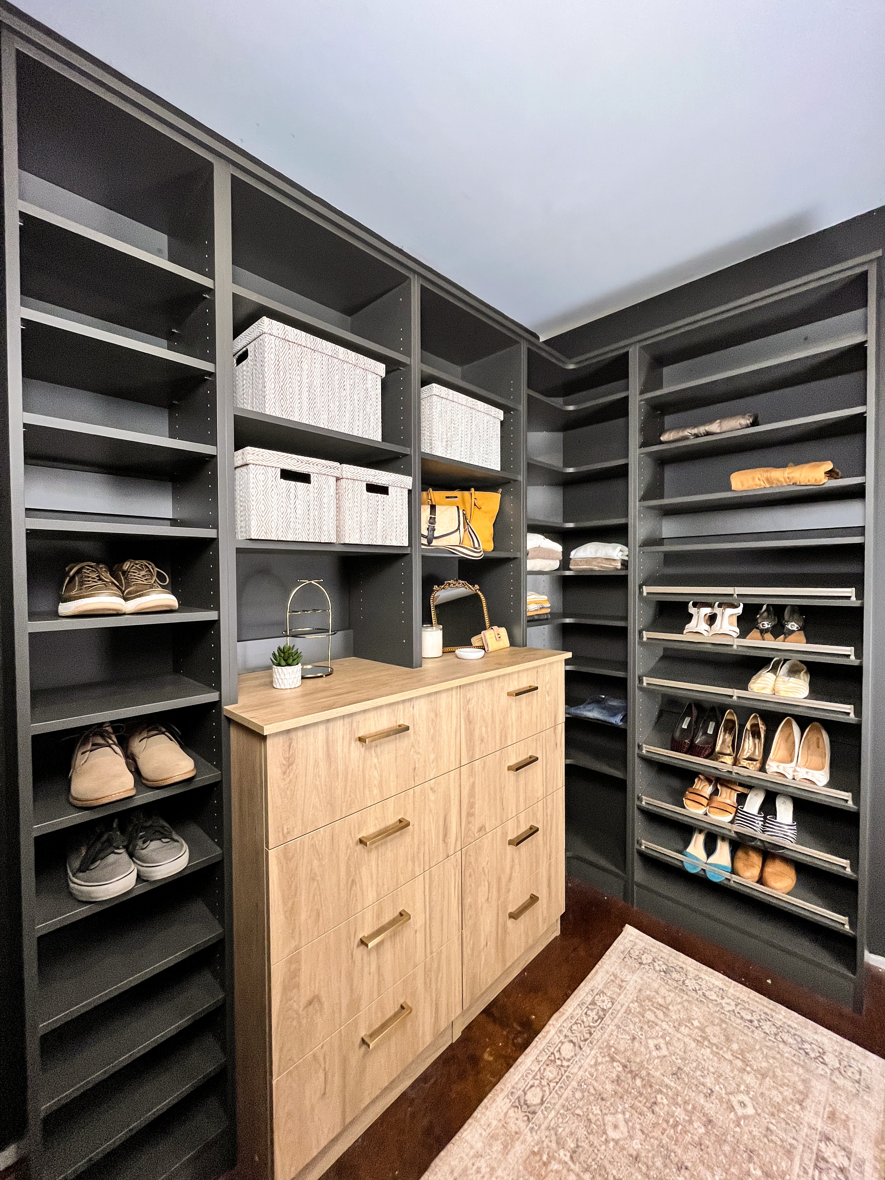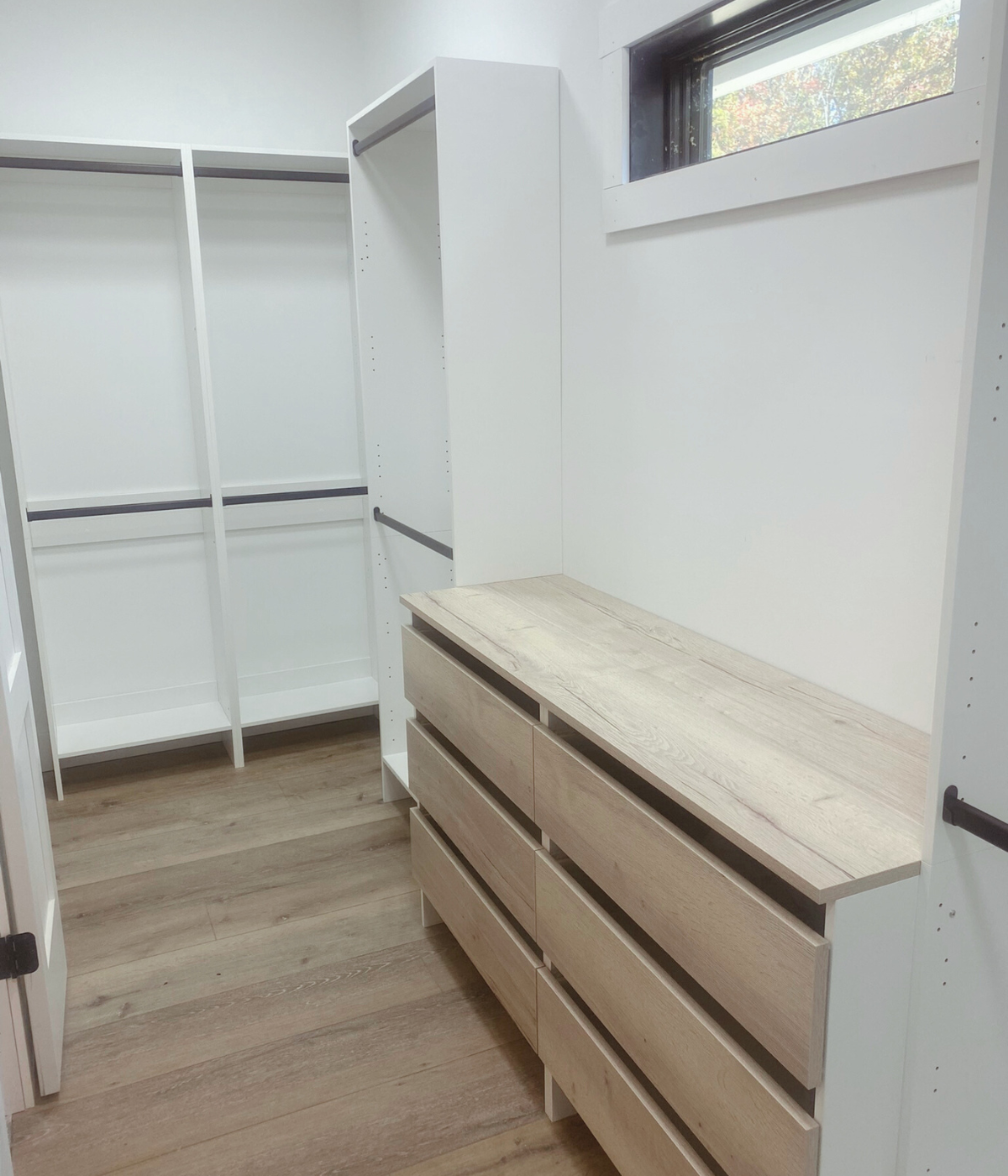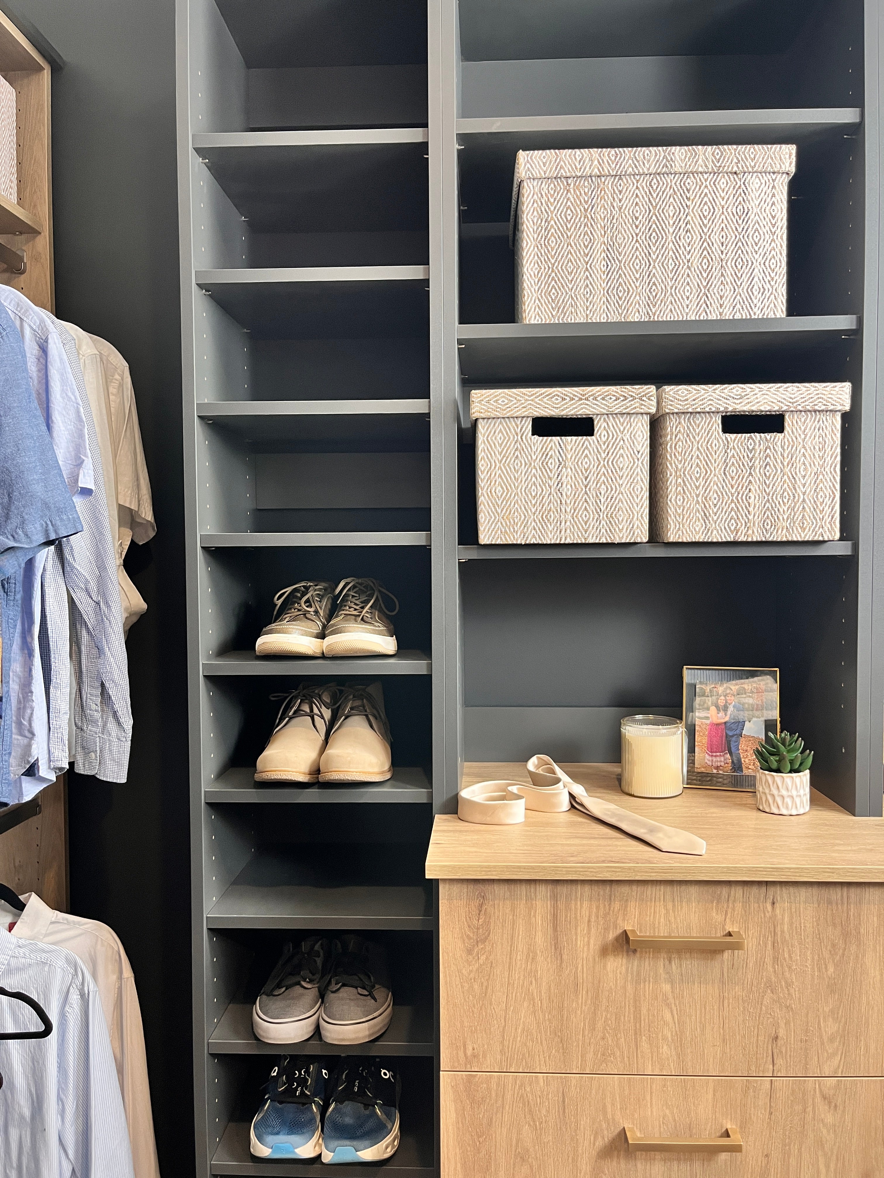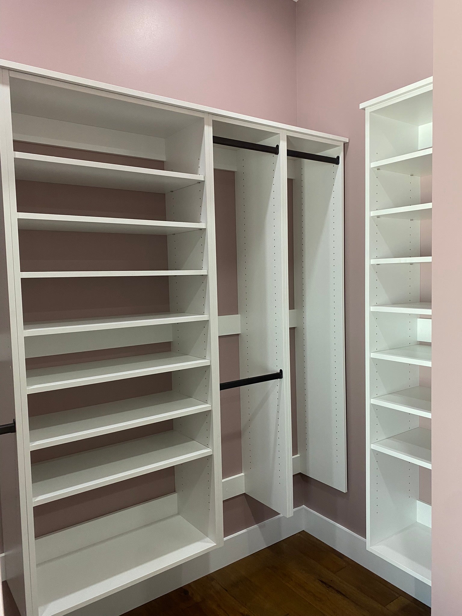 Below are just a few of the unique closets customers have been able to create using the Arrange product line. Whether it's designing a custom closet or purchasing a pre-fabricated design, our solutions can meet any need from master closet to some extra storage shelves in a laundry.